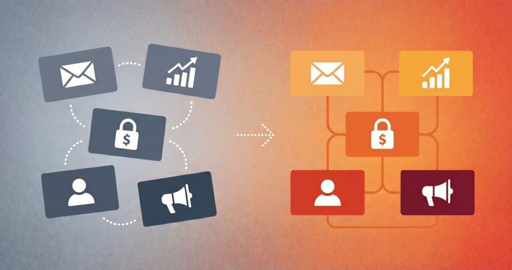 For publishers specifically, the fragmentation problem compounds: a typical mid-size newsroom might run separate systems for its CMS, paywall, CRM, email marketing, analytics, ad serving, and audience segmentation, with limited data flowing between them.